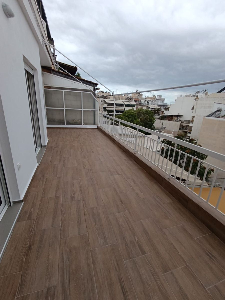 ΑΝΑΚΑΙΝΙΣΜΕΝΟ (2025) , διαμπερές ΡΕΤΙΡΕ 72 τ.μ. στον 4ο όροφο, προσόψεως. Διαθέτει μεγάλη βεράντα 40 τ.μ. και επιπλέον μπαλκόνι στην πίσω πλευρά. Περιλαμβάνει 2 υπνοδωμάτια με καινούριες ντουλάπες, ενιαίο χώρο κουζίνας – σαλονιού και 1 μπάνιο. Έχουν τοποθετηθεί καινούρια πλακάκια, κουφώματα αλουμινίου και πόρτα ασφαλείας.